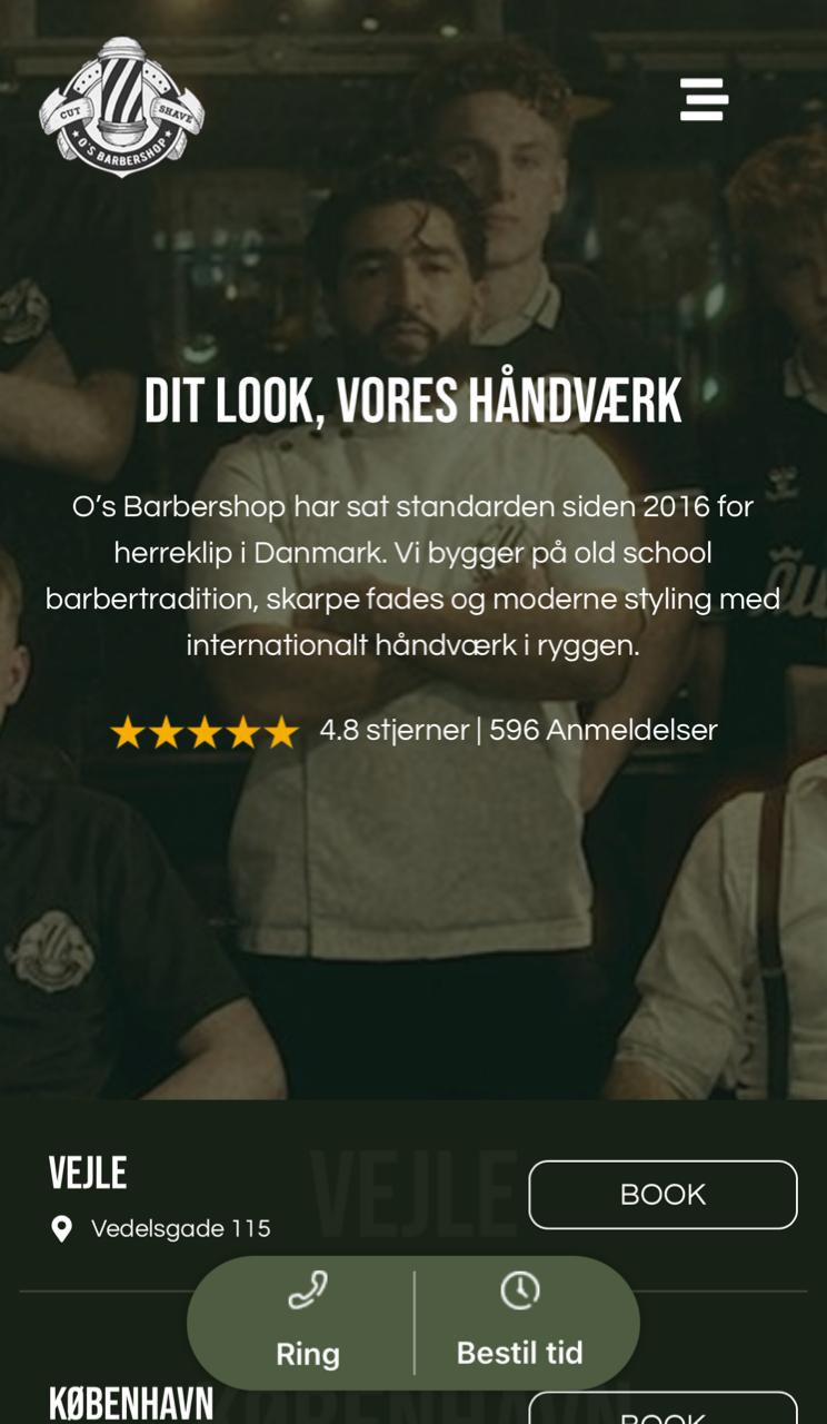O’s Barbershop stod midt i en rebranding og havde behov for en ny hjemmeside, der kunne følge med deres vækst. Den gamle løsning var blevet uoverskuelig i takt med udvidelsen til flere saloner, og det var uklart for kunderne, hvilken lokation de bookede tid hos. Der var behov for et mere moderne udtryk og en mere intuitiv bookingrejse.